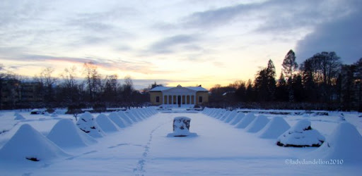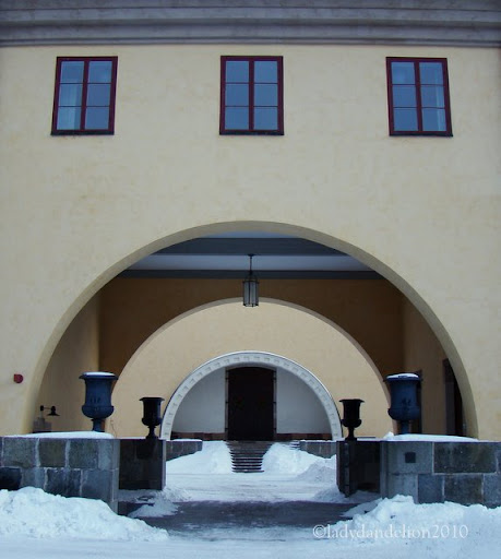 Above: The baroque part of the Botanical garden with its geometrically cut bushes – embedded in snow which makes them less formal than their usual state. Shape/s and perspecive/s never cease to fascinate me. How playing with perspective – like the trompe d’oeil artists – can change the atmosphere and scenery completely and create powerful illusions. The photo above (actually all three photos in the post) is rather untampered with – just heavily cropped to get the right – perspective. Below: Details – shapes – from the building (which is an orangery) in the photo above. I used to live nearby and visited the park at least once a week, but now it can be quite long stretches of time between my visits, which is a pity since I really love this place – especially now when it rather empty which makes it easier to explore it on my own. The traces you see in the middle of the first photo comes from a hare. Unfortunately I didn’t see the hare itself – only its traces, but they are quite poetic.