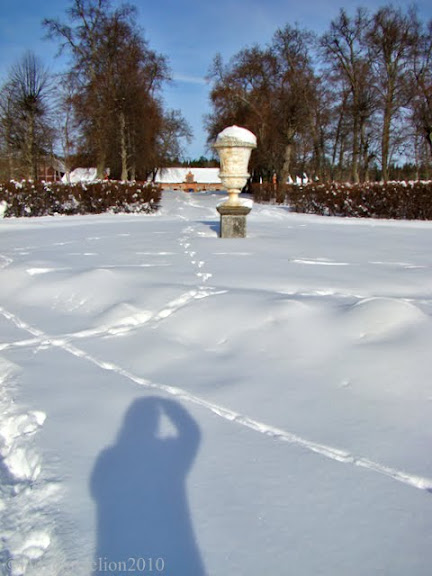 It doesn’t show in the photos, but the snow was deep up to above the knees, so I got myself some exercise when I ploughed through the snow. This place is often loaded with people during high season in spring, summer, early autumn and around Christmas. I was intrigued to find it wholly covered in snow. The shop and café was under reconstruction, so there was no shovelled paths in the snow. Abandoned and asleep. Me and the traces of hares, foxes and birds in the snow and just a few tracks of other human beings in this part of the garden. Very special and surprising.