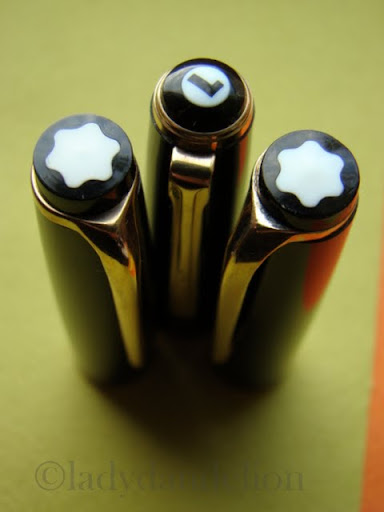 OK. I should have waited with publishing any of these until I’d written a proper text to accompany them. But since I can’t control my OCD to post things immediately I post a couple of photos of my little newly assembled trio from the sixties: 2*Montblanc no 22 (OB & OM nibs) and 1 Lamy 22 (OM) nib. This sleek, refined design has really sneaked into my heart and the semi-hooded nibs on these MBs are a little minimalistic piece of art. Beware – more is to come.