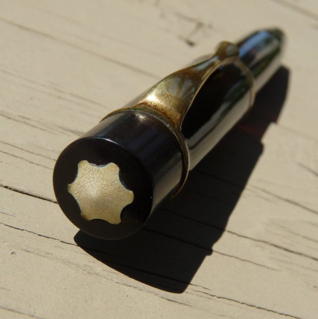 Today I finally inked up this vintage Montblanc. I took a few snaps of it in broad sunlight and this is the only photo that turned out ok, but I think it captures the feel of this pen pretty well. I fancy this old, cracked star far more than the modern, unscathed.