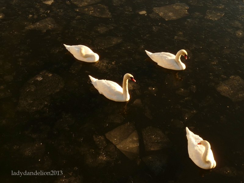 Swans in the icy Strömmen