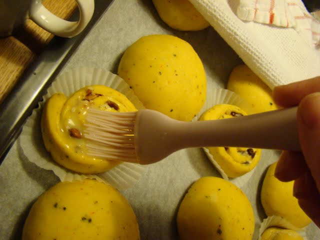 Brush the rolls with the beaten egg (room temperature) put into the oven for 10-15 minutes
